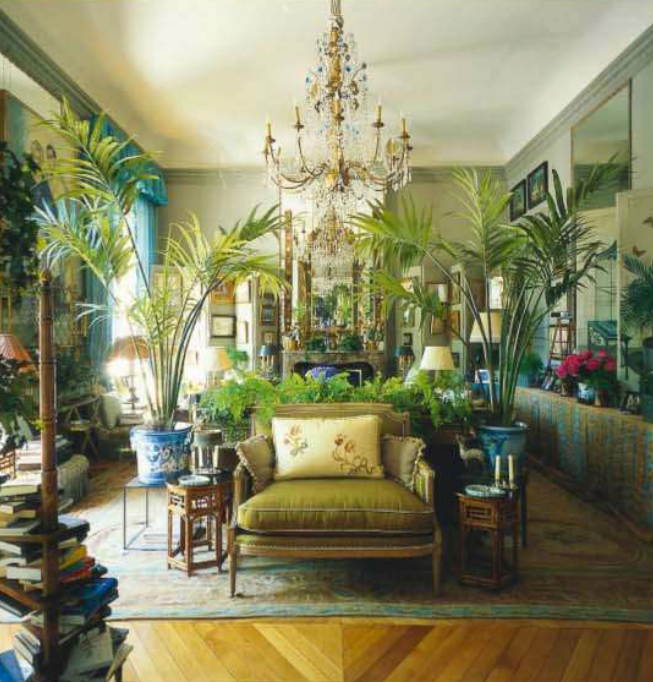 I can't keep a house plant alive for over a week---so as you can imagine I never think to use them as a home decor accent. However, I do love the whimsy they add to this home....so much so that I may just buy a watering can! I am serious! As much as I love my succulents, that thrive on neglect, I also crave the texture and drama more high maintenance plants add to formal + over the top spaces.