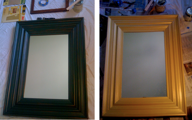 This weeked I decided to finally complete a project that I have had on my list for over 6 months! You see one of my biggest home decor dilemmas was not having any large pieces to hang on my walls and although it can be fun to play with proportion my walls were looking a little silly. So I decided to give facelift a mirror that I had had for while but that wasn't quite my style. And with some elbow grease, primer and three layers of metallic paint (RL Champagne Toast) I succeeded!